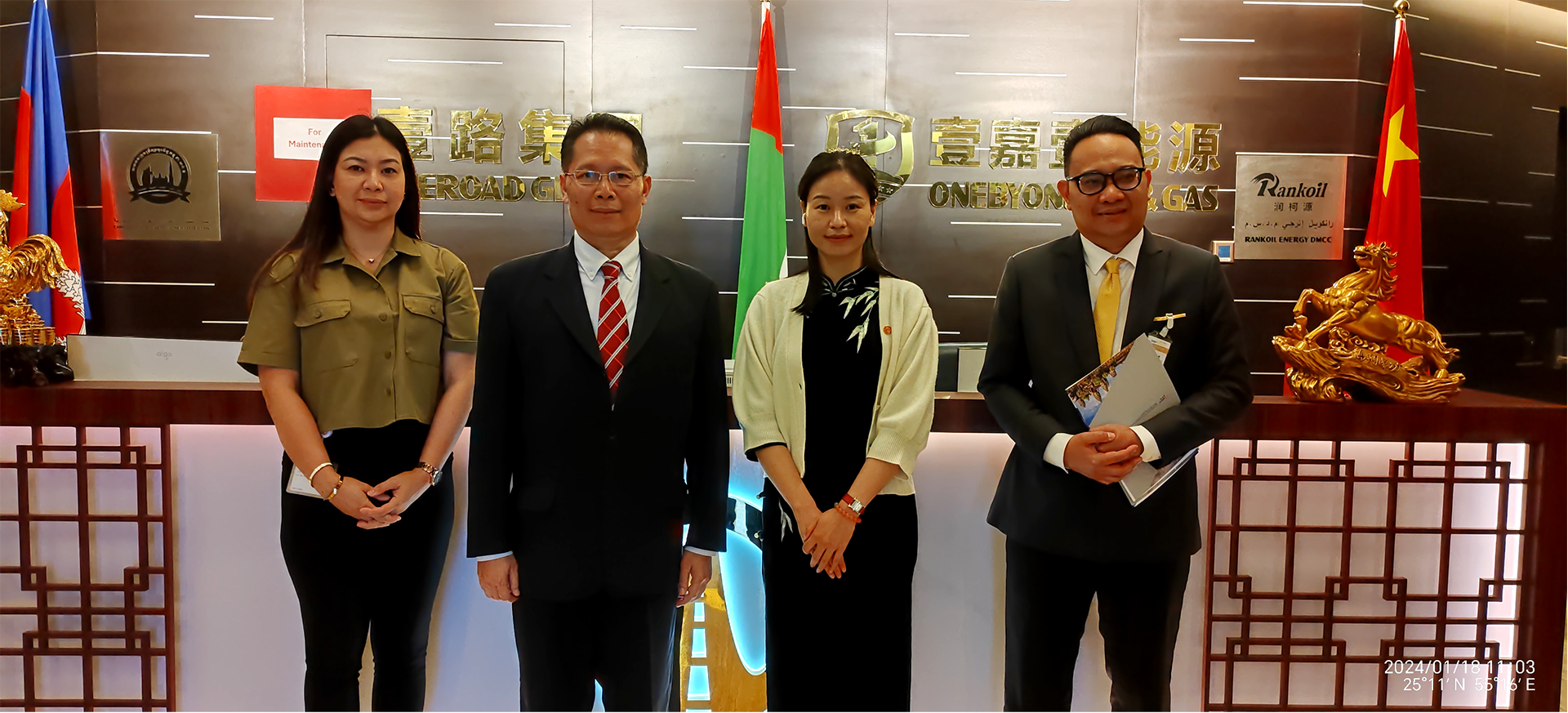 On January 18, Mr. Sorayut Chasombat, Ambassador of Thailand to the United Arab Emirates, and his delegation visited the Dubai headquarters of Oneroad Group. Ms. Zhang Chenling, CEO of Oneroad Group, held talks with Ambassador Sorayut Chasombat on investment cooperation matters.